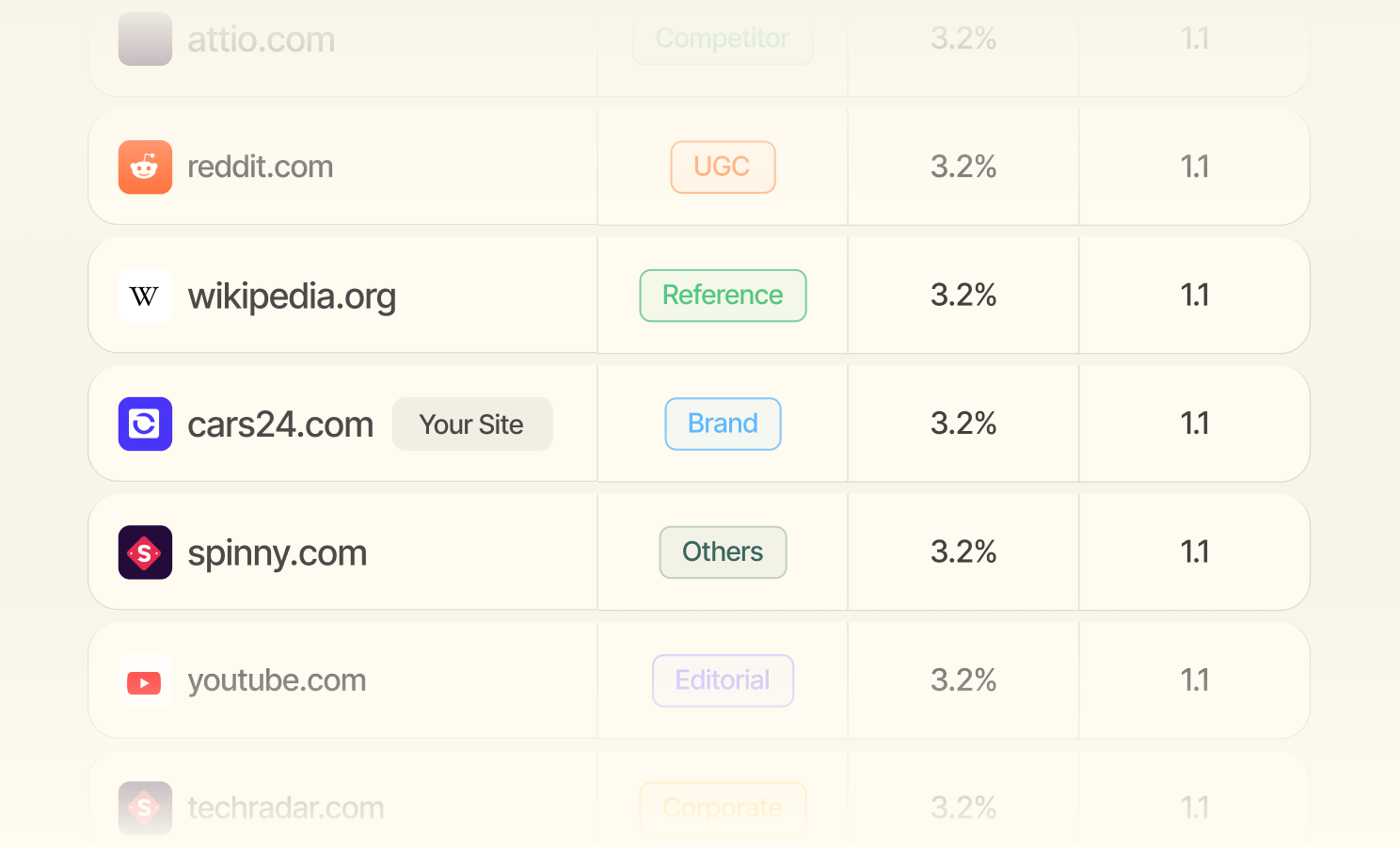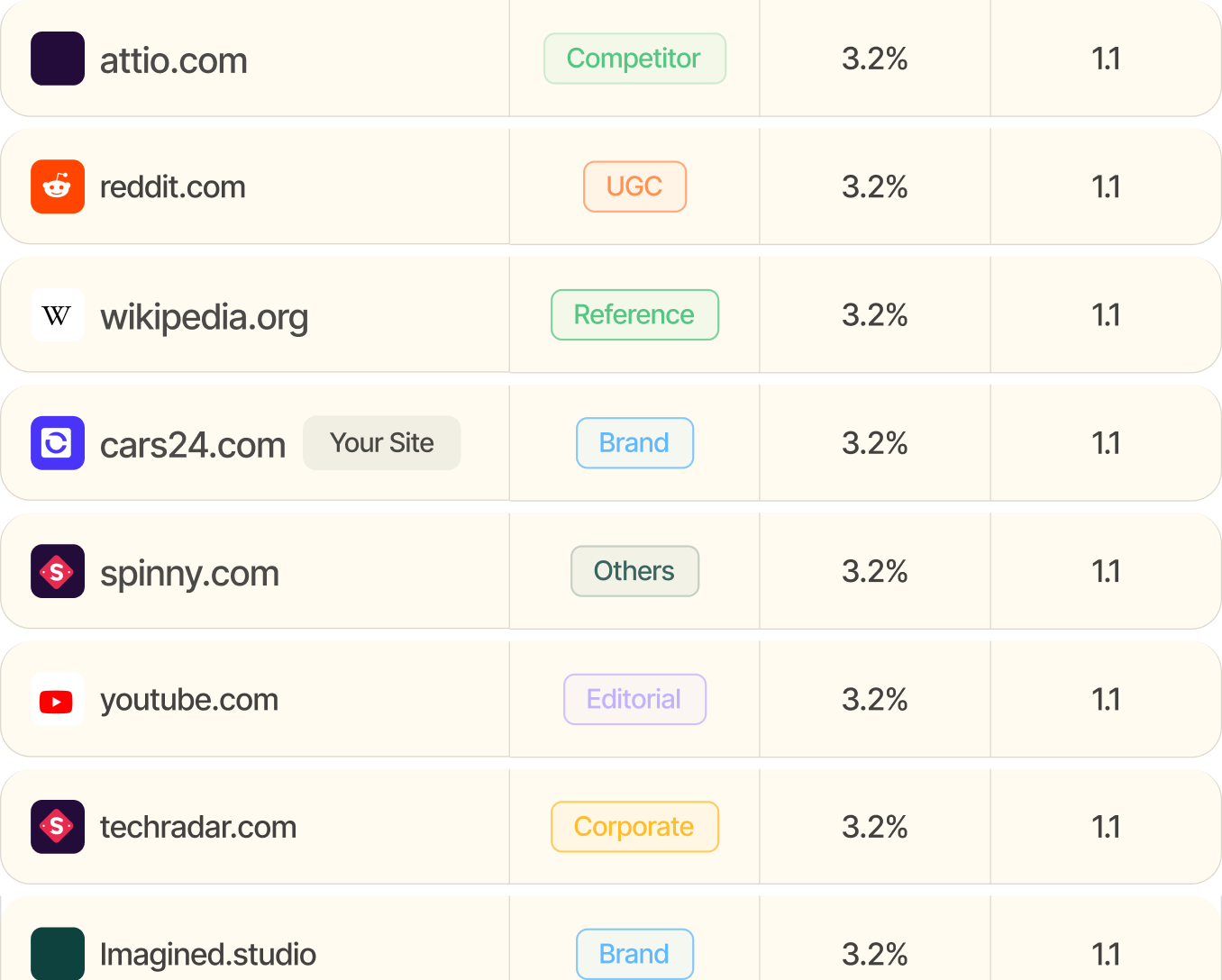 Generate, edit, and publish AI-optimised content at scale. Build a data-backed content strategy using citations, sentiment, & competitive insights - crafted for maximum visibility across all answer engines.